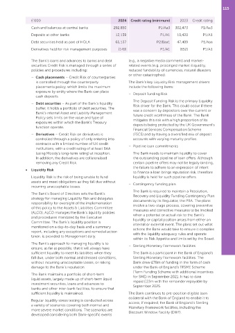 is controlled through the counterparty The Bank’s key Liquidity Risk management drivers
