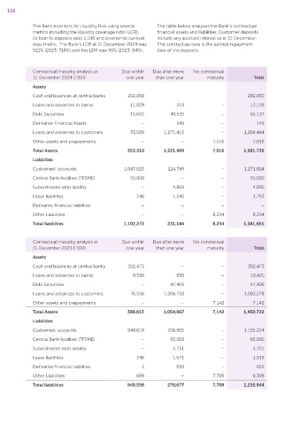 The Bank monitors its Liquidity Risk using several The table below analyses the Bank’s contractual