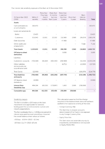 The interest rate sensitivity exposure of the Bank at 31 December 2023: