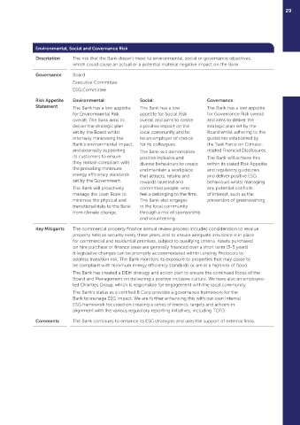 Comments The Bank continues to enhance its ESG strategies and uses the support of external firms.