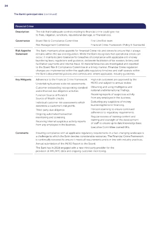 Risk Appetite The Bank maintains a low appetite for Financial Crime risk and strives to ensure that it always