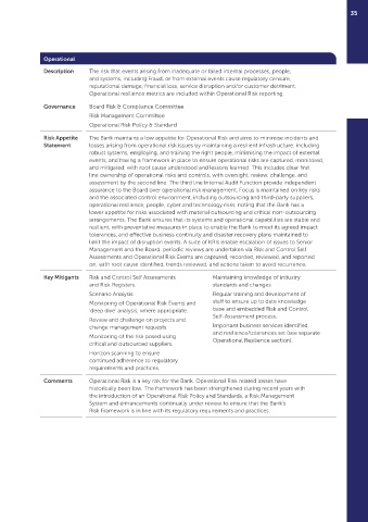 Comments Operational Risk is a key risk for the Bank. Operational Risk related losses have