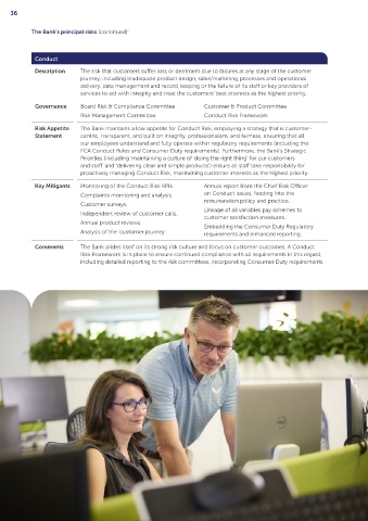 Risk Appetite The Bank maintains a low appetite for Conduct Risk, employing a strategy that is customer‑