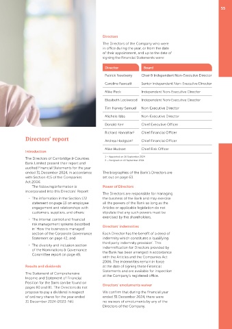 ended 31 December 2024, in accordance The biographies of the Bank’s Directors are
