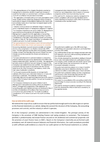 the provision of asset finance loans to SME's. Based on the Company's materiality we performed audit