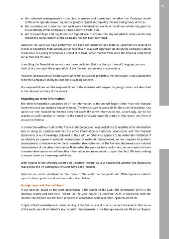 With respect to the Strategic report and Directors' Report, we also considered whether the disclosures