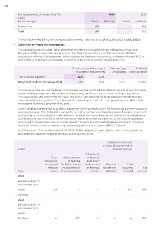 The fair value of the Bank’s derivatives in place at the year‑end was an asset of £149k (2023: liability £652k).