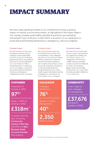 lending to SMEs Satisfaction each colleague Environment B Corp